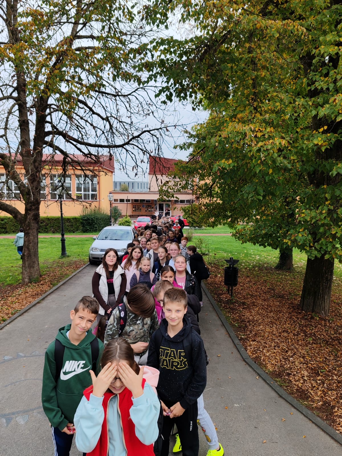 Učenici su normalnim hodom krenuli prema Strmcu u koloni po 2 učenika poštujući pravila ponašanja u prometu. Tempo nije bio prejak te su gotovo svi učenici uspijevali držati korak. Ukoliko je netko zaostajao, utoliko je skupina usporila i sačekala sve učenike da se priključe.