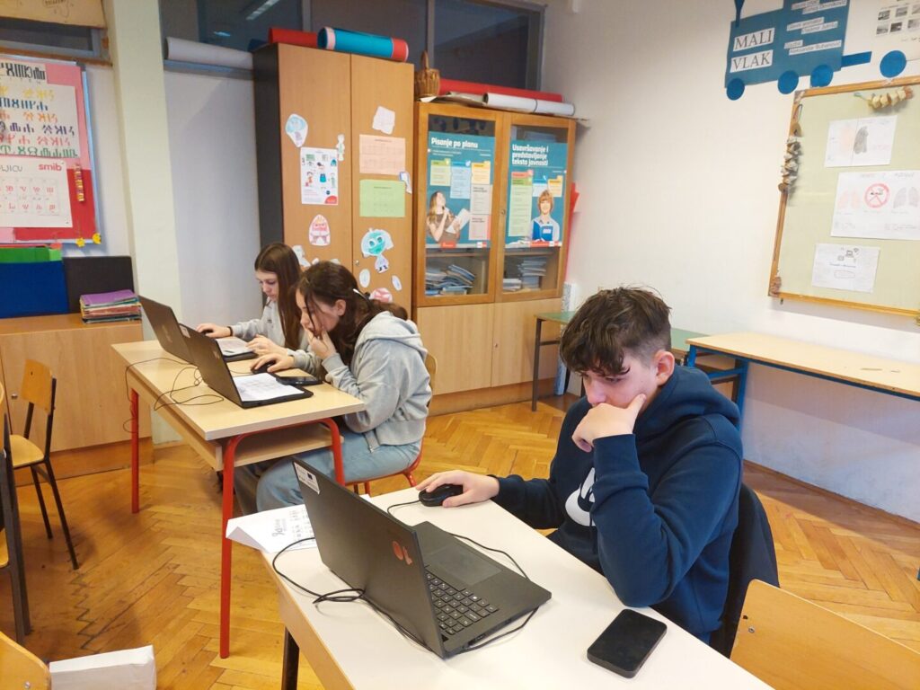 Učenici su se upoznali i s natjecateljskom igrom Glagomatika koju su zainteresirano uvježbavali. Danas su, ujedno, učenici 8. b razreda — Ela, Antonio, Benjamin i Magdalena — sudjelovali na natjecanju Glagomatika te ostvarili izvrsne rezultate. Oni su već iskusni sudionici ovog natjecanja, a šestaši će, čini se, uskoro krenuti njihovim stopama.