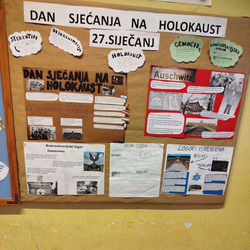Učenici 8.a i 8.b razreda obilježili su Dan sjećanja na žrtve Holokausta u utorak, 27. siječnja, sudjelovanjem u integriranom nastavnom danu – Holokaust. Aktivnosti su provedene povezivanjem nastavnih sadržaja iz Povijesti i Hrvatskog jezika uz vodstvo učiteljica Čeko, Špoljar i Miholić.